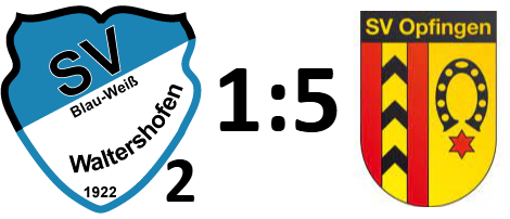 Die zweite Hälfte begann jedoch denkbar schlecht. Ein schlimmer Fehlpass brachte die Gäste in eine erneute Angriffssituation, die per schönem Distanzschuss zum 0:2 verwertet wurde. Aber Waltershofen steckte nicht auf. Nur kurz nach dem zweiten Gegentreffer versuchte Benedikt Bier den gegnerischen Torhüter per Heber zu überrumpeln. Der Ball klatschte an die Latte, von dort aber noch einmal vor die Füße von Bene Bier. Und nun verwandelte er den Abpraller zum 1:2. Und dem SVW bot sich die große Chance, sogar auszugleichen. Doch Niklas Schwind vergab die Chance per Elfmeter auszugleichen. Sein Schuss ging knapp über die Latte. Dann aber hatten die Opfinger wieder deutlich mehr vom Spiel und nutzten Schwächen des SVW aus. Eine gute Viertelstunde vor Schluss bescherte wieder mal ein Fehlpass der Waltershofener den Gästen eine gute Chance, die sie sich nicht entgehen ließen und auf 1:3 erhöhten. Innerhalb von nur 10 Minuten ließen sie dem noch 2 weitere Tore folgen und konnten somit am Schluss einen deutlichen 5:1-Sieg für sich verbuchen.